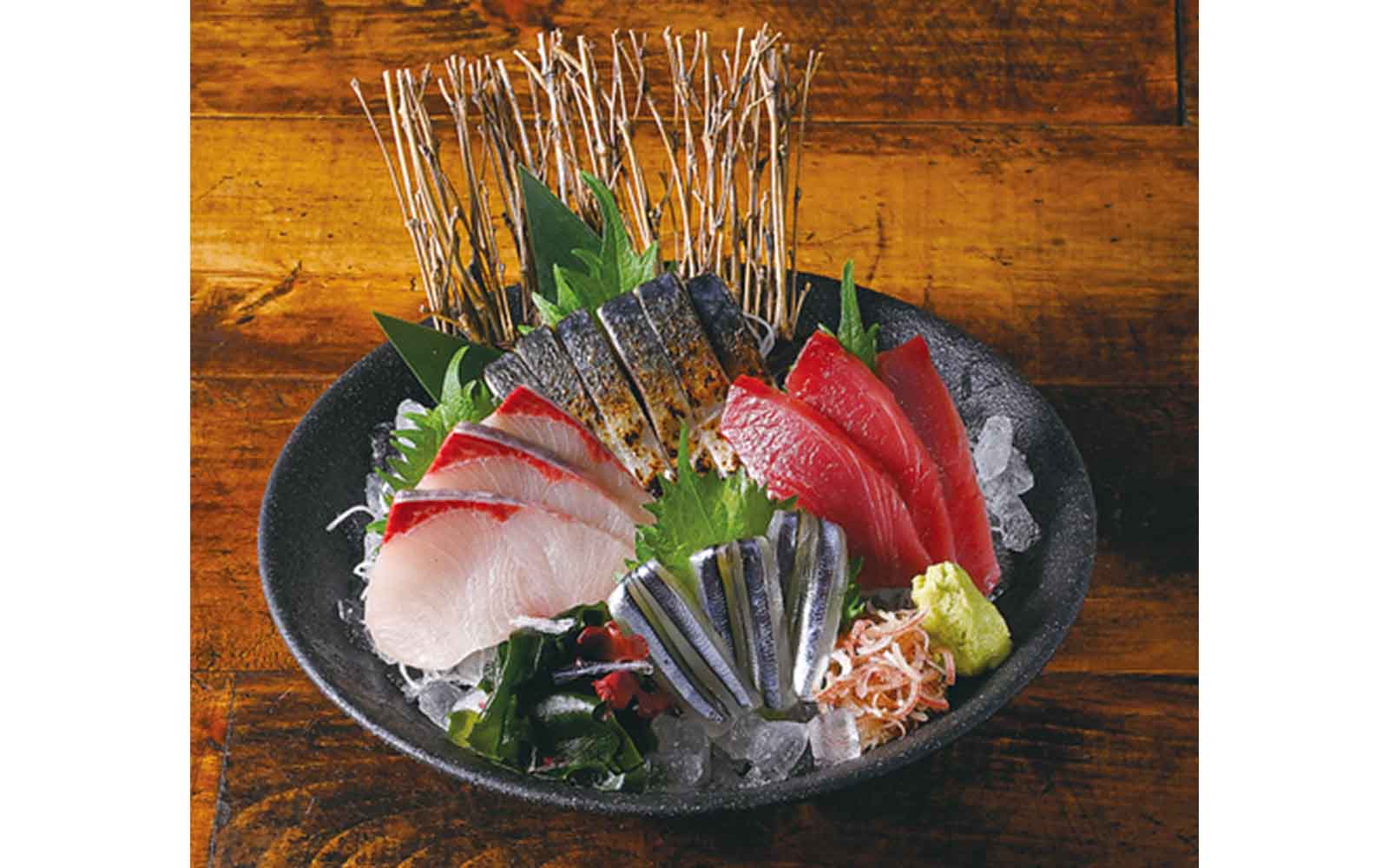 地鶏炭火焼、羽根付き餃子、くすとと刺身盛、地鶏各種